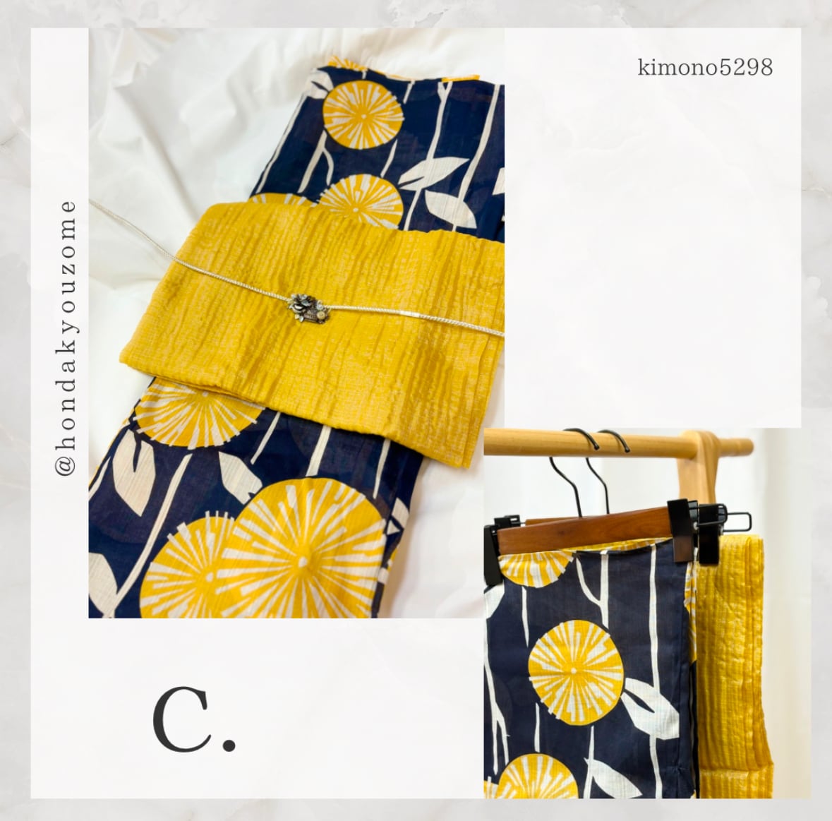 《浴衣兵児帯セット》浴衣 高級浴衣 おしゃれ 高品質 仕立て上がり お得なセット ひまわり 黄色 ひまわりイエロー
