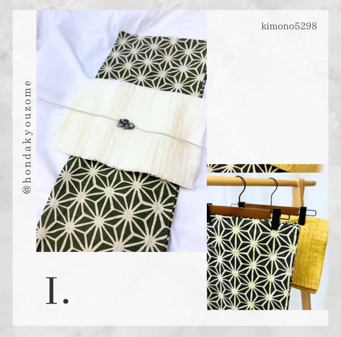 《浴衣兵児帯セット》浴衣 高級浴衣 おしゃれ 高品質 仕立て上がり お得なセット グリーン ホワイト