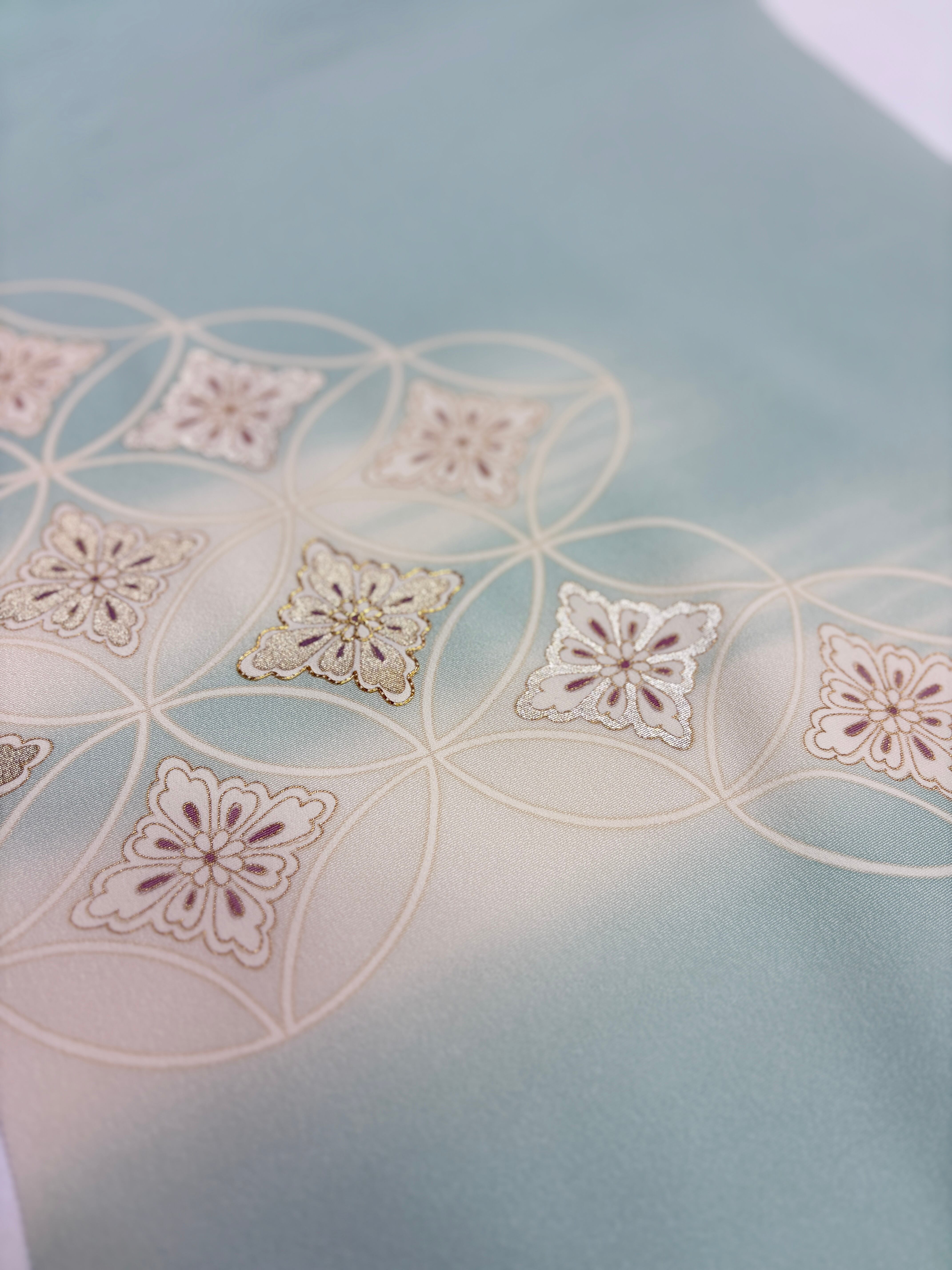 《付け下げ》付け下げ訪問着 付け下げ 訪問着 ティファニーブルー 七宝 菊菱 上品