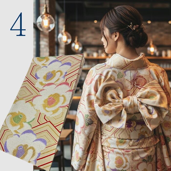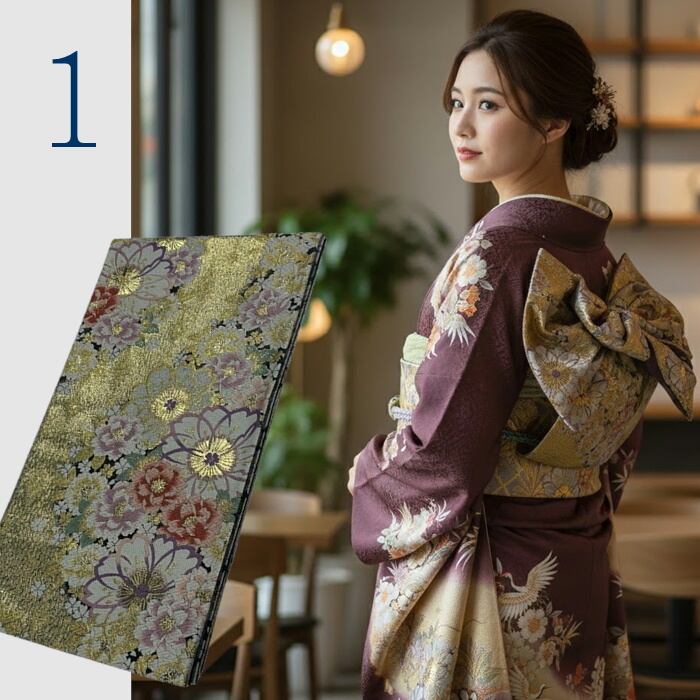 フォーマルな振袖に最適な高級袋帯です。しっかりとした正絹素材を使用しており、伝統的な西陣織の技法で仕立てられています。