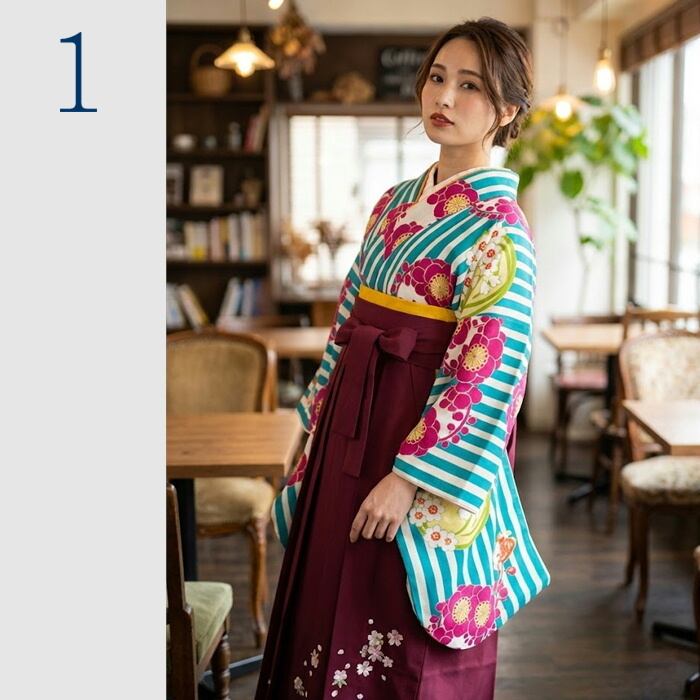 この振袖セットは、すぐにお使いいただけるように全てのアイテムが揃っていますので、安心して卒業式に臨むことができます。慌ただしい準備の中でも、このセットがあれば完璧なスタイルが手に入ります。