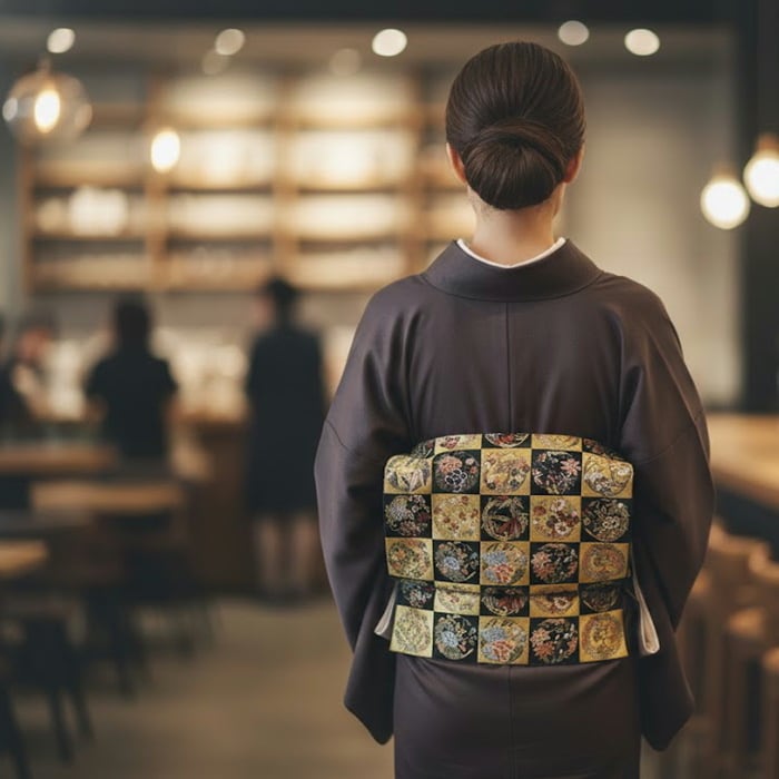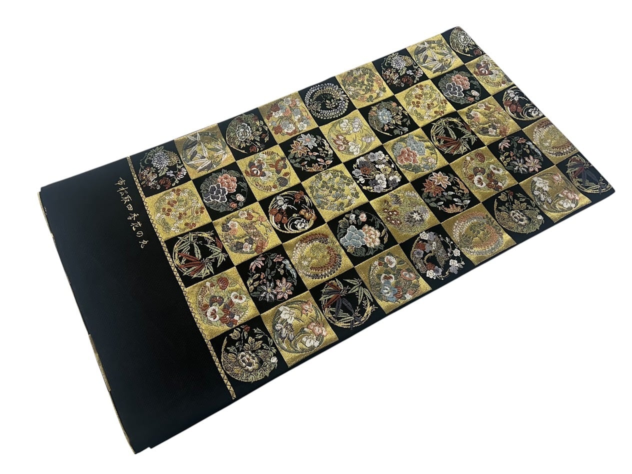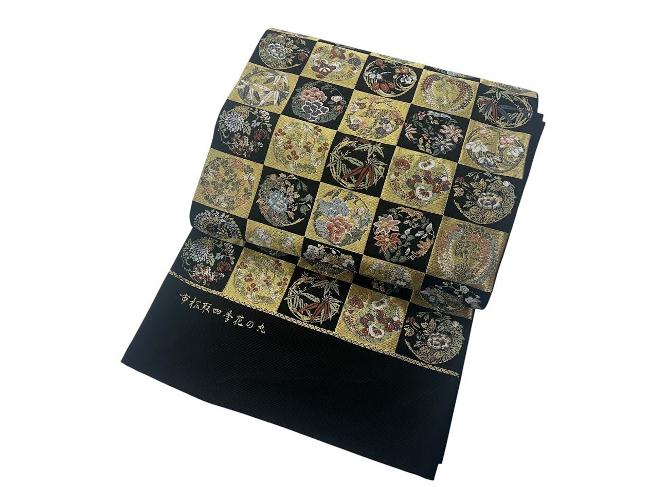 落ち着いた黒色の帯地は、