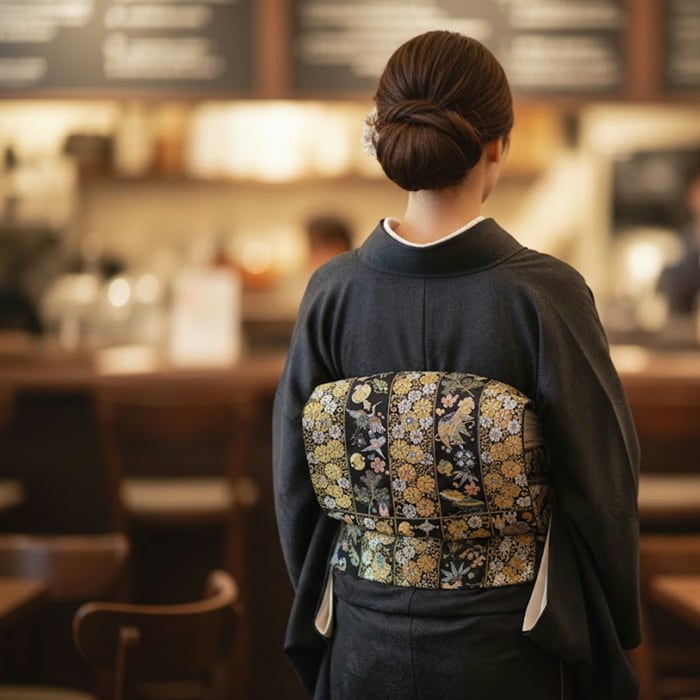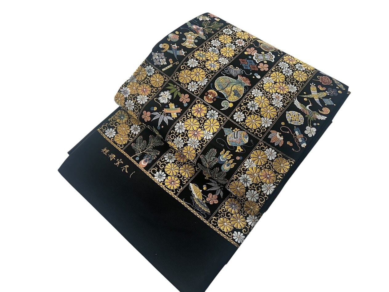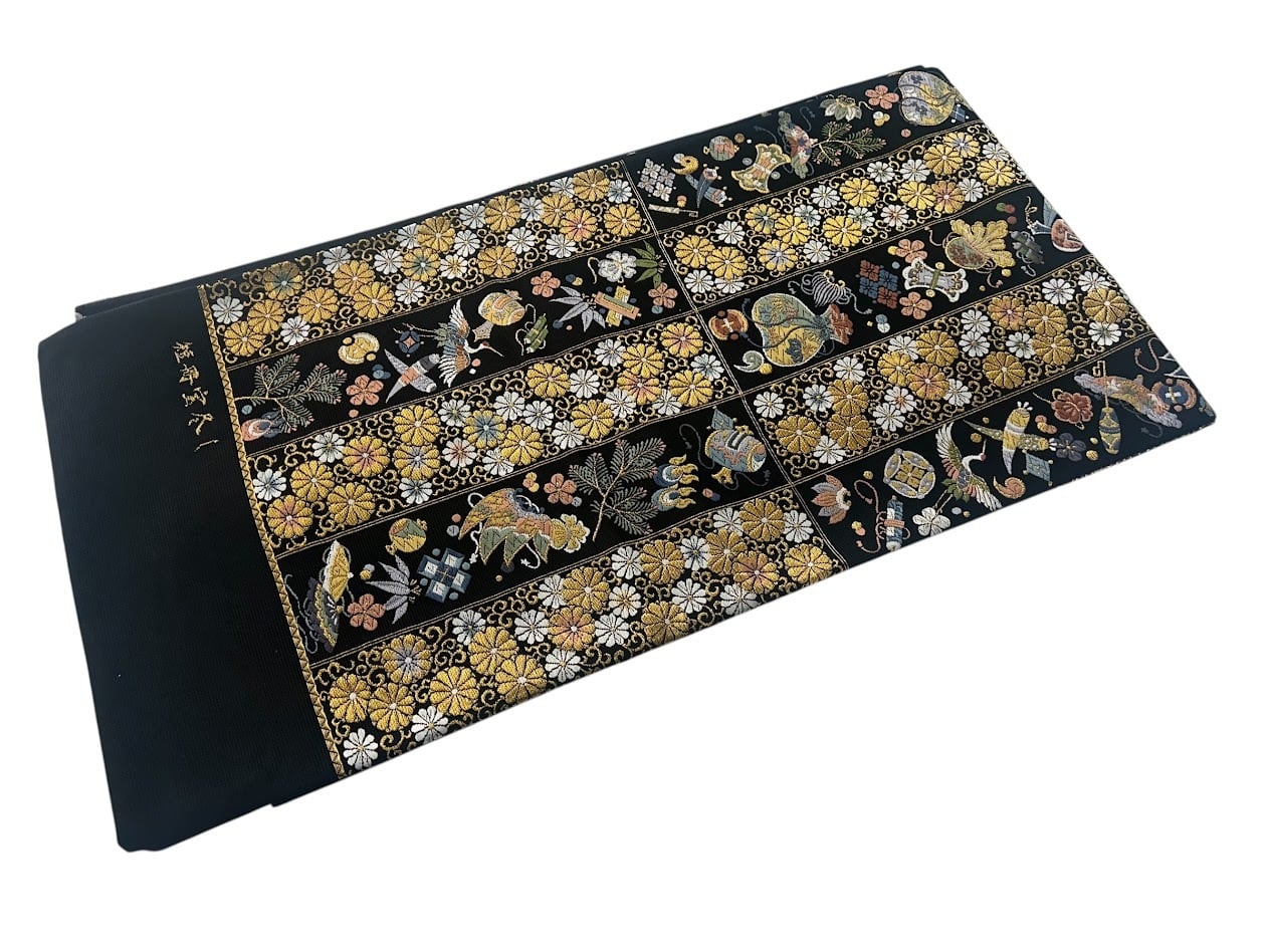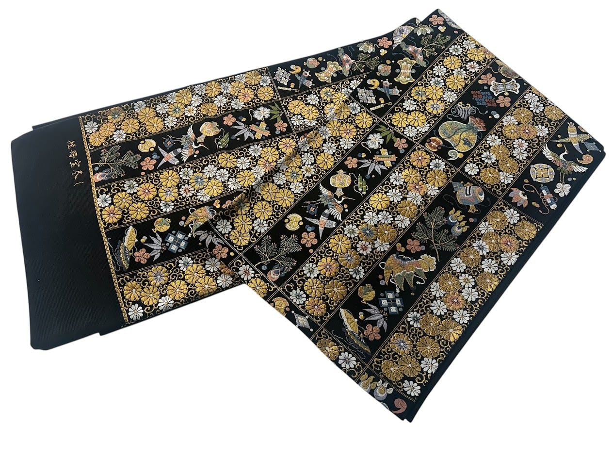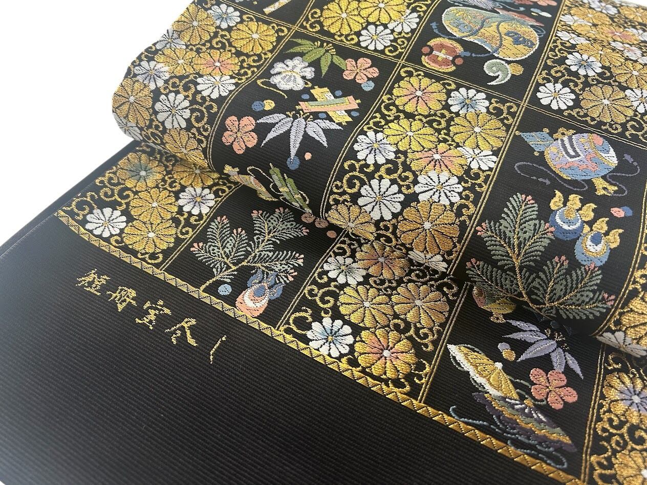 落ち着いた黒色の帯地は、