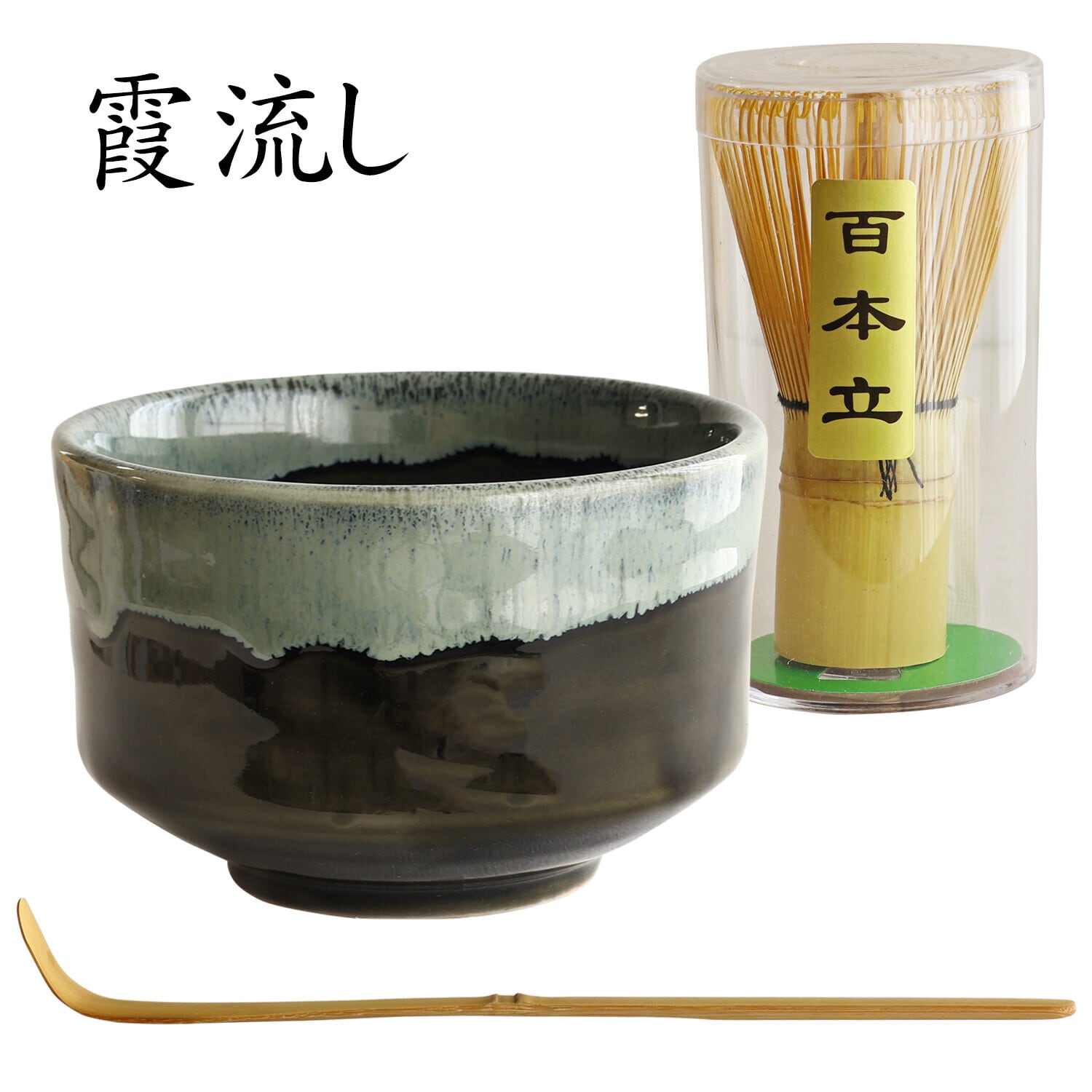 霞流し 抹茶碗×1 茶筅×1 茶杓×1