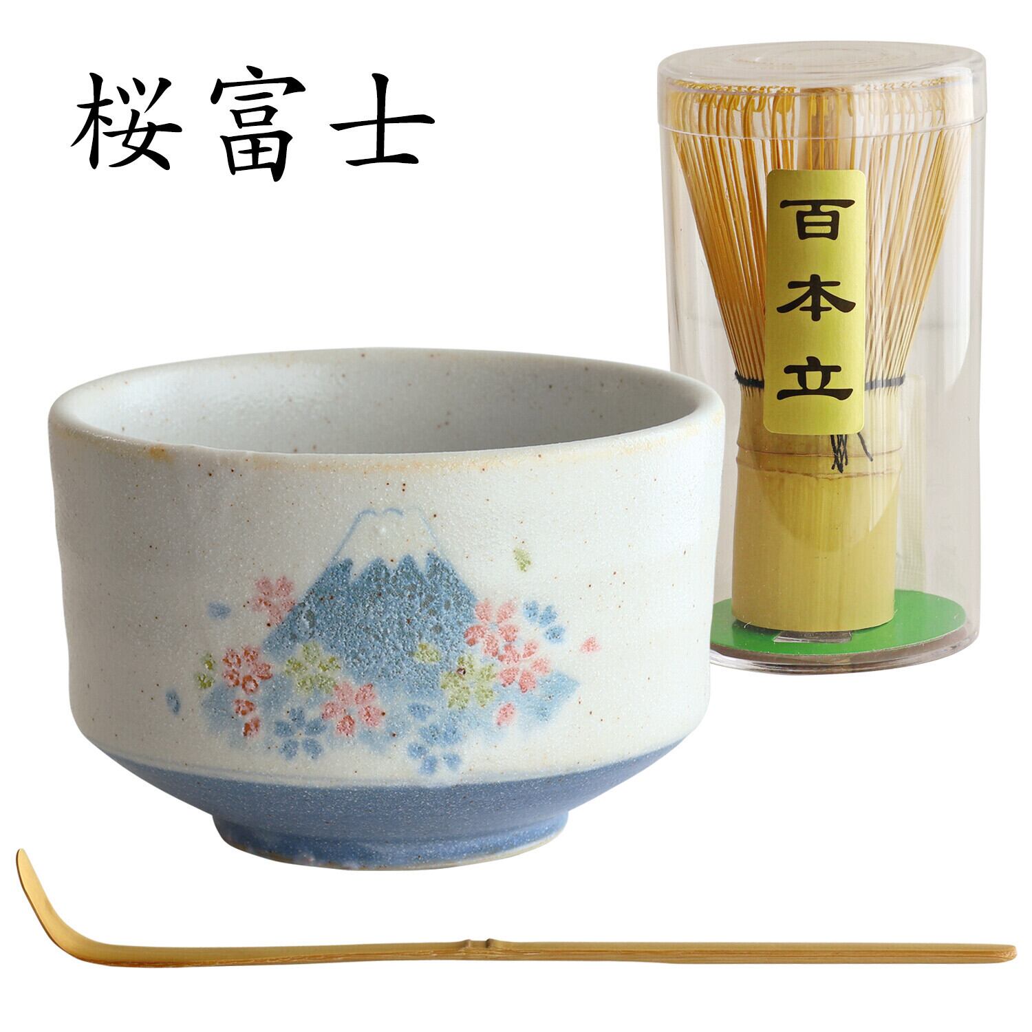 桜富士 抹茶碗×1 茶筅×1 茶杓×1