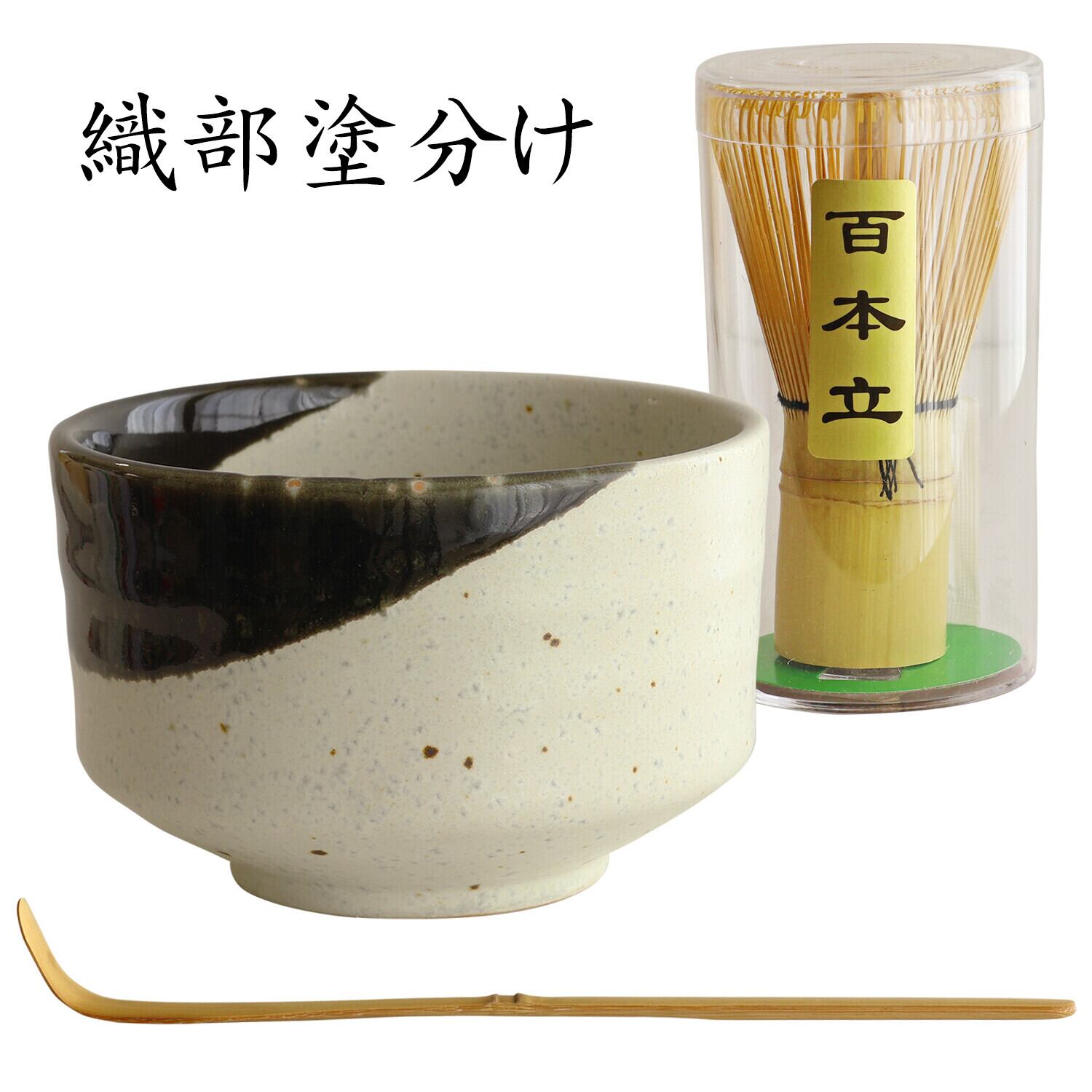 織部塗り分け 抹茶碗×1 茶筅×1 茶杓×1