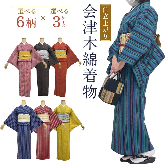 会津木綿 仕立て上がり S M L 日本製 福島県 会津 縫製日本 会津木綿の反物を仕立てて販売 すぐにお召になれる 単衣 木綿の着物 着物 単品 kimono5298 呉服 お手入れ簡単 着物入門 初心者 ベテラン 木綿の着物 木綿 あいず 伝統 希少 縞 あいずもめん もめん 年中