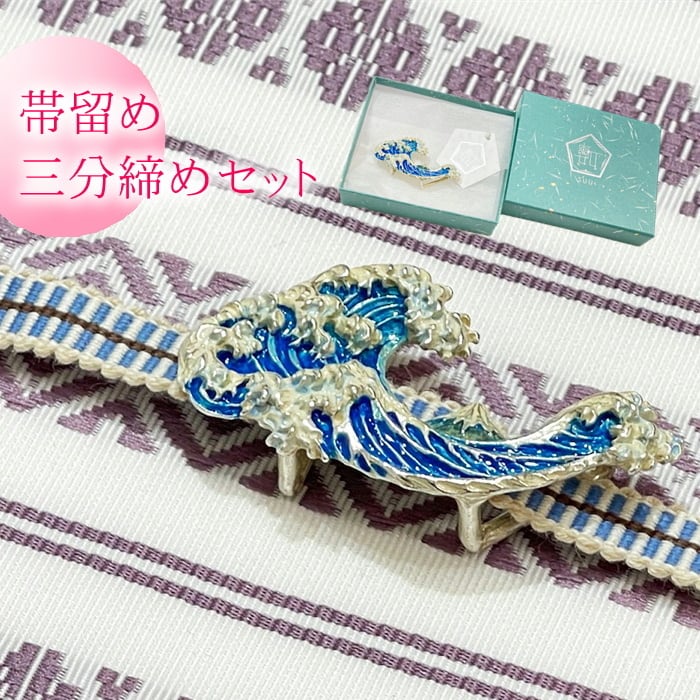 【帯留め 三分紐セット】神奈川沖浪裏 帯留め おしゃれでかわいい 箱入り トレンド帯留め 三分紐付き 紬やデニム着物 アンティーク着物 お出かけ おしゃれ用 帯留 着物 モダン おしゃれ カジュアル プレゼント 母の日 誕生日 敬老 数 suu o帯留め 日本製 -SUU-