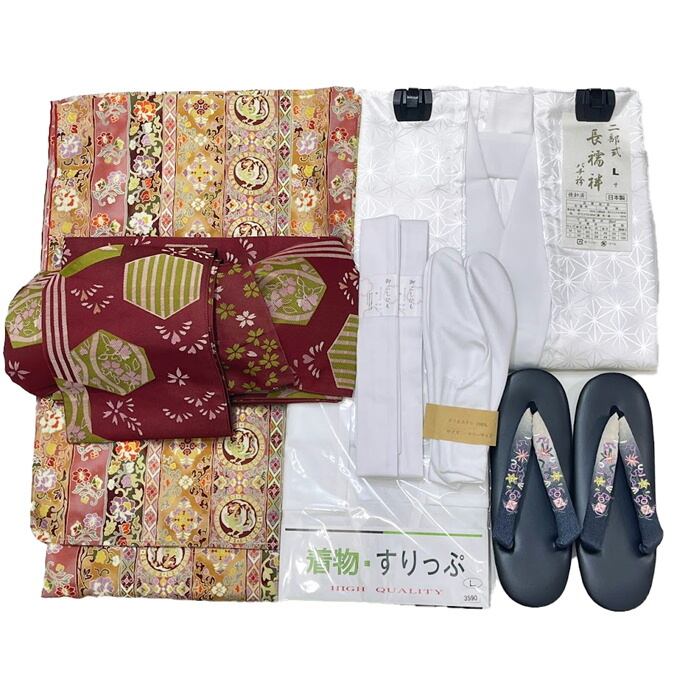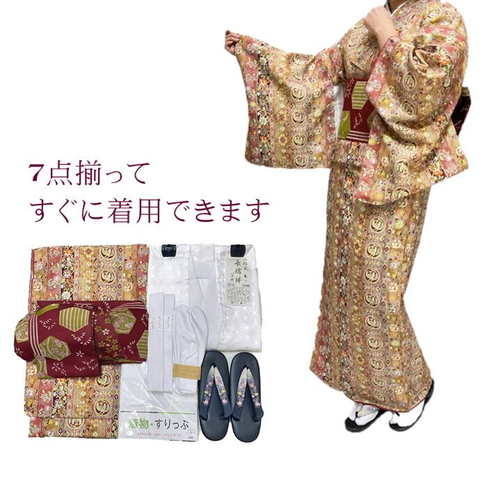 着物セット 福袋【品番10078792】【着物 作り帯 襦袢 足袋 こしひも ゾウリ スリップ】洗える着物 着物 セット 福袋 身長155-170センチ前後の方対応 7点フルセット 初心者 きものセット 着物セット福袋 お楽しみ着物セット モダン HL クラシック着物 届いてすぐに着用できる 着物入門