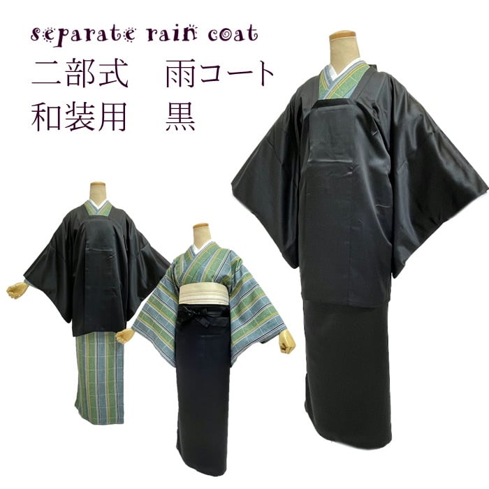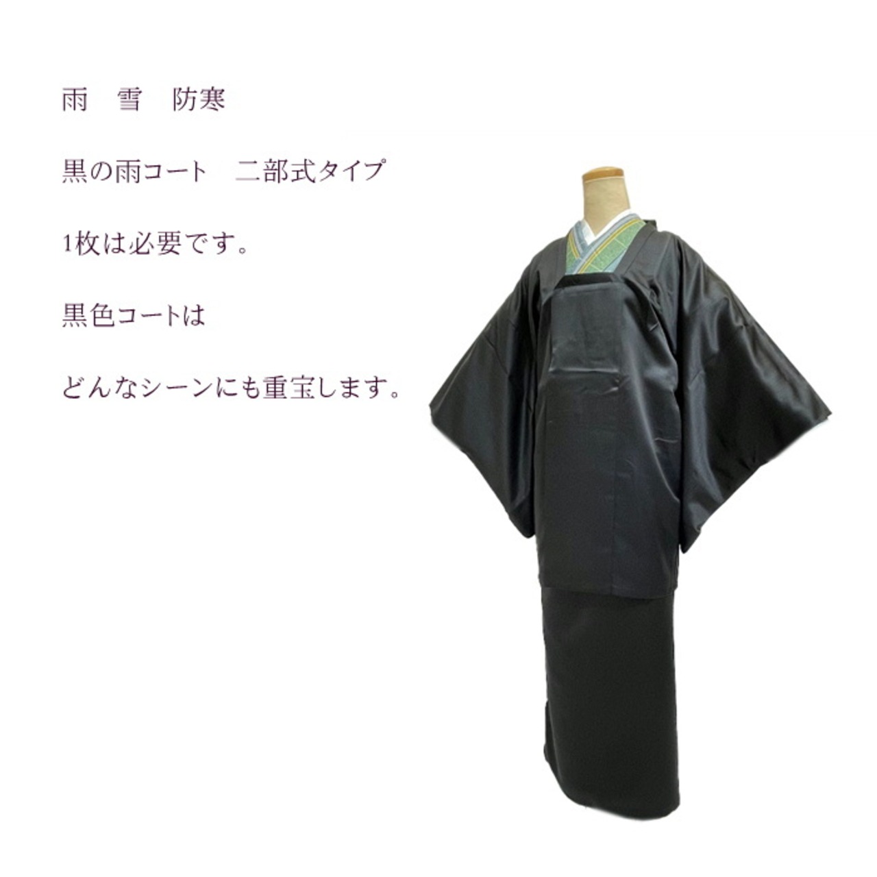 雨コート 【黒 ブラック】黒は礼装 カジュアルにも使える便利な色 合羽 雨コート 着物 和装 二部式 雨コート 雨の日 おしゃれ 携帯ポーチ 送料無料 着物 雨コート 二部式 和装 レインコート 和装用 二部式コート カッパ 雨具 セパレート コート 雨対策 M L LL サイズ