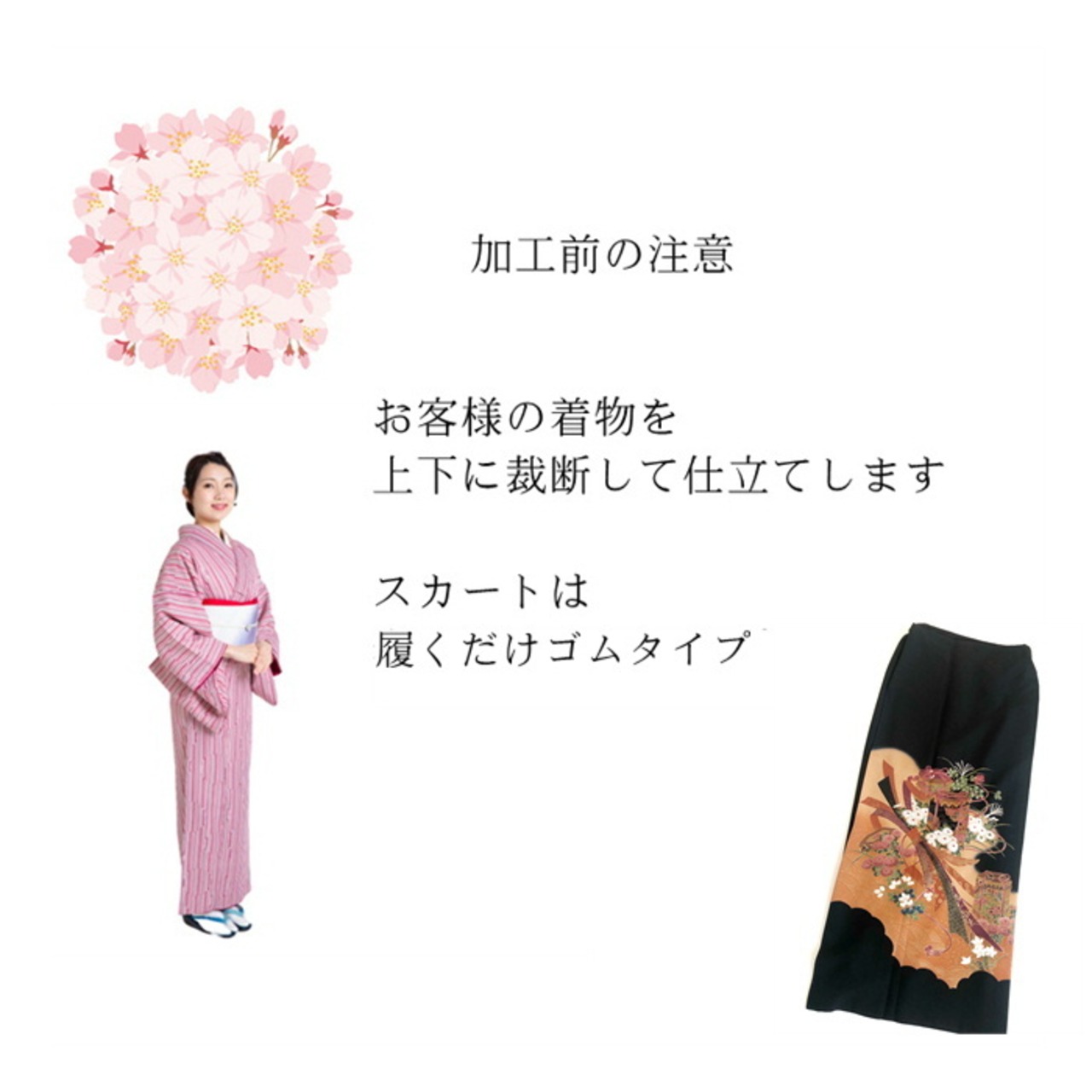ゴムスカートタイプ セパレート 仕立て加工 【当店にお客様の着物 なんでもお送りください】 二部式 セパレートに 加工します。 簡単 着付け セパレート 二部式 スカート kimono5298 海外 お土産 プレゼント 簡単着物 加工 ゴムスカートタイプ 二部式着物 簡単着物 楽々
