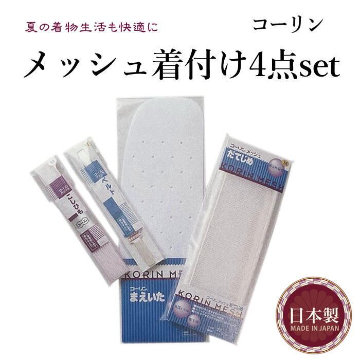コーリン メッシュ ゆかた着付け4点セット 浴衣用 夏用 日本製 着物用 メッシュで快適 浴衣の着付けの定番 ゆかた着用だけではなく通常の着物にも使用できます メッシュなので締め付け感が無く通気性があり快適です 浴衣 着付け 小物 和装 着付けの必需品です コーリン
