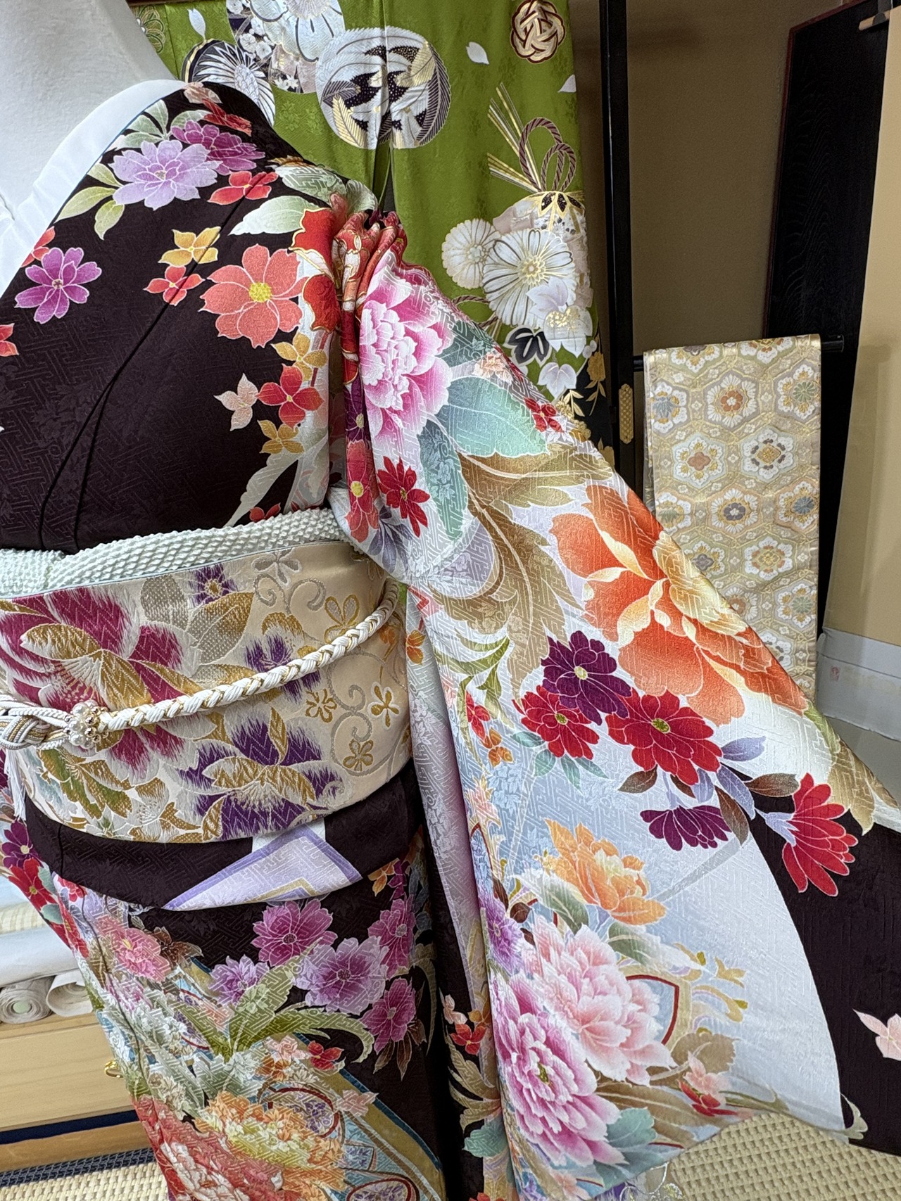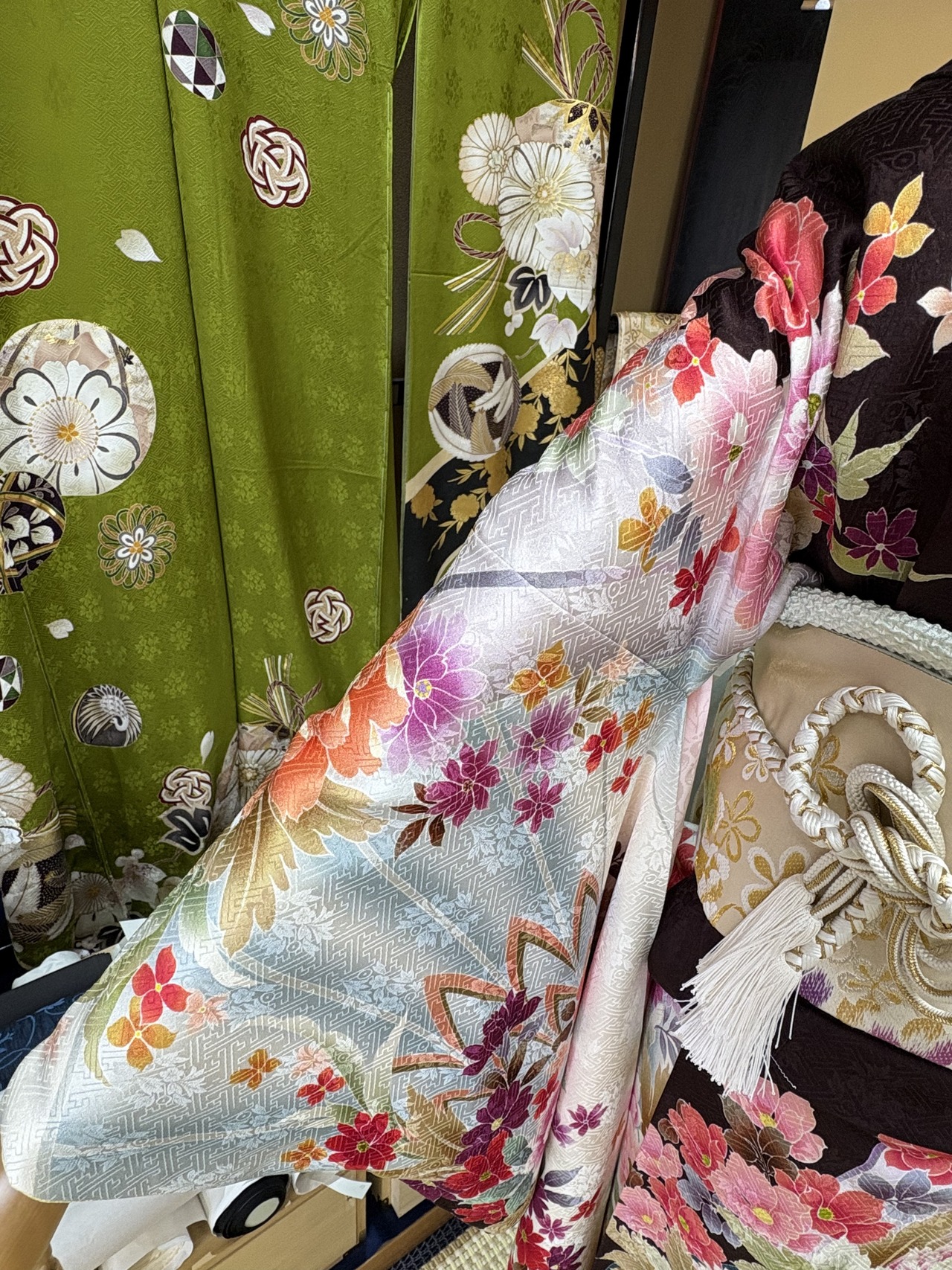 この振袖セットは、成人式をはじめ、結婚式の出席、親族の集まりなど特別なイベントでの使用に最適です。絞り振袖と一緒に素敵な瞬間をぜひお楽しみください。早めのご予約をお勧めいたします。